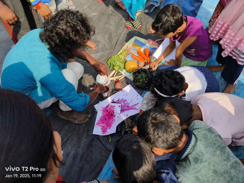 We, Zeal and Notion Joynagar Majilpur, held a two-day fair named “Hattamelar Deshe.” There were approximately 40 stalls, where people operated their own businesses and made profits in their own manner. A lot of people operate small businesses at home or online, and this fair gave them a chance to display their craftsmanship and businesses to a wider population, both inside and outside Joynagar.